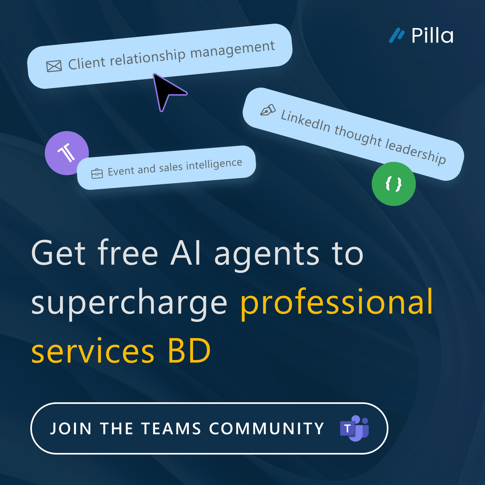 We've just launched a Microsoft Teams community sharing done-for-you AI automations and templates to help with business development and thought-leadership. Sign up at pilla.ai/community
